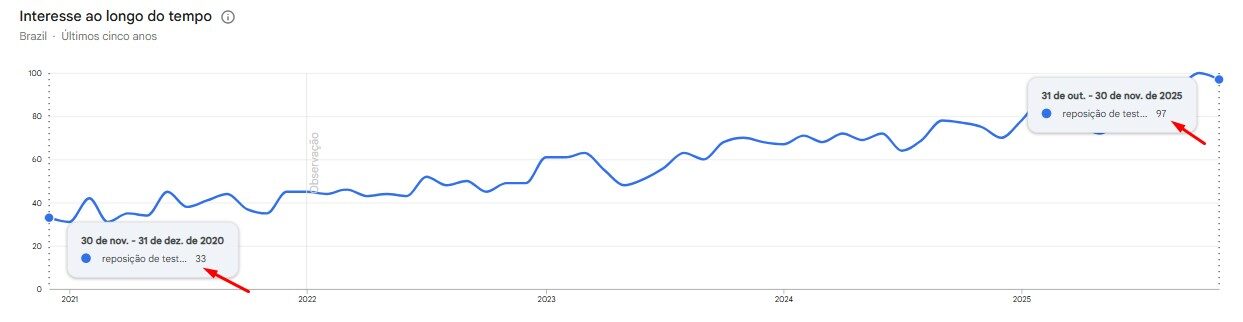 Busca por “Reposição de testosterona” no Google Trends nos últimos 5 anos